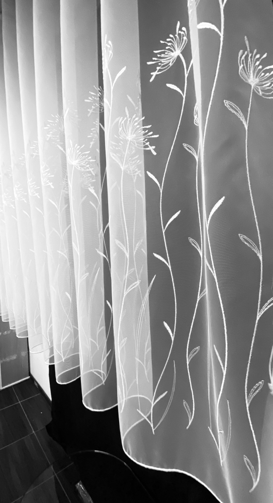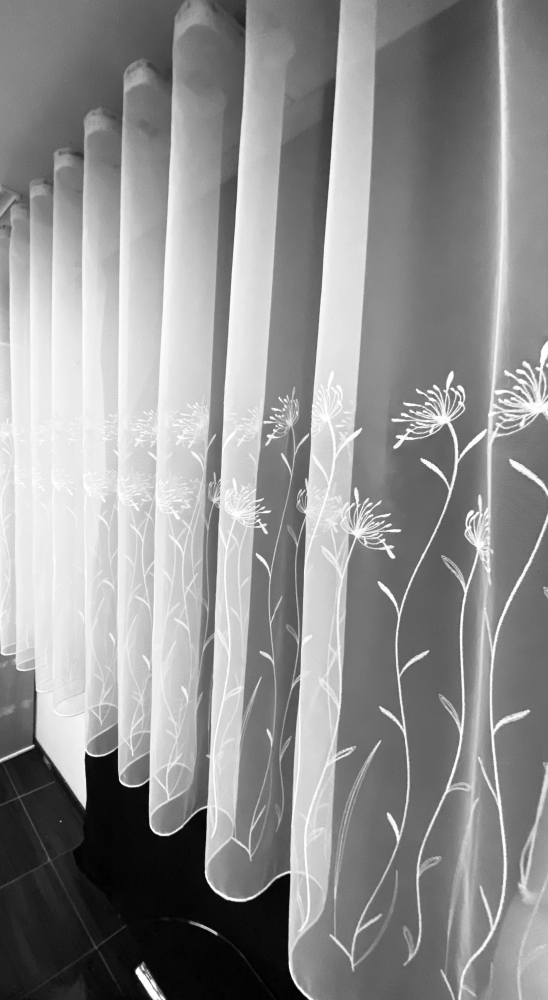 Luxusná, snehobiela záclona, metráž,netreba žehliť č.W201