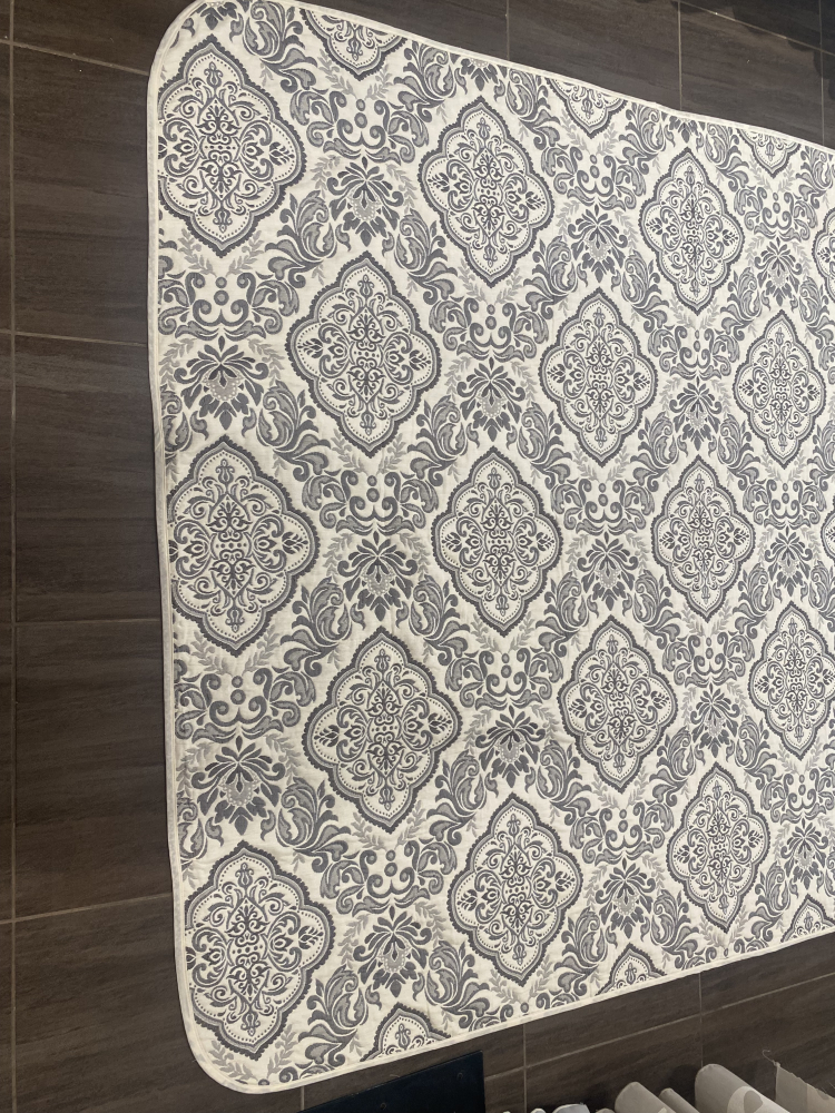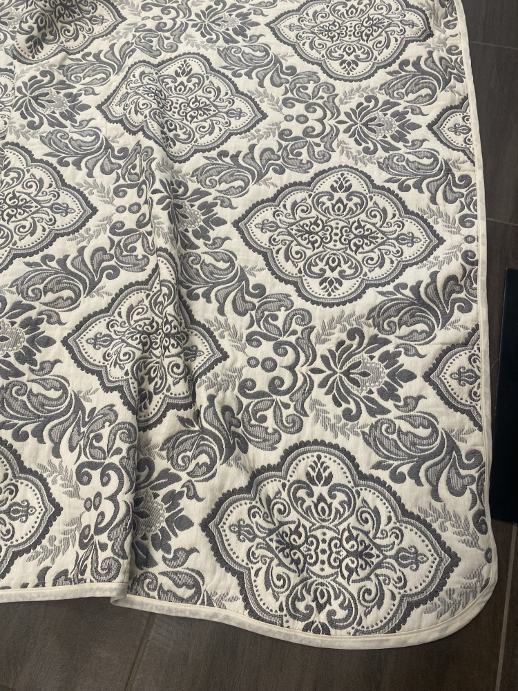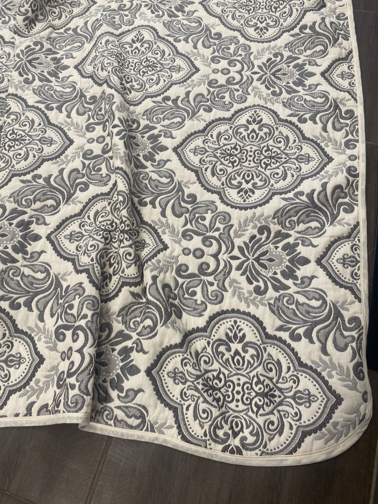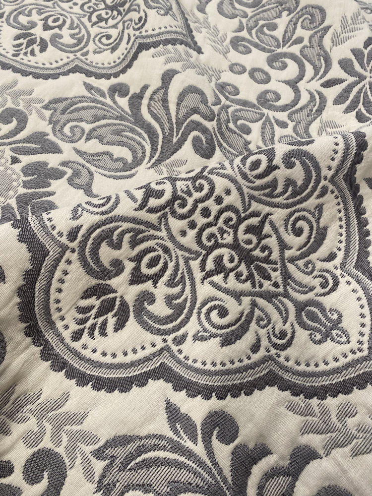 Lacný prehoz na posteľ, válendu - krémový podklad, sivý vzor č.7
