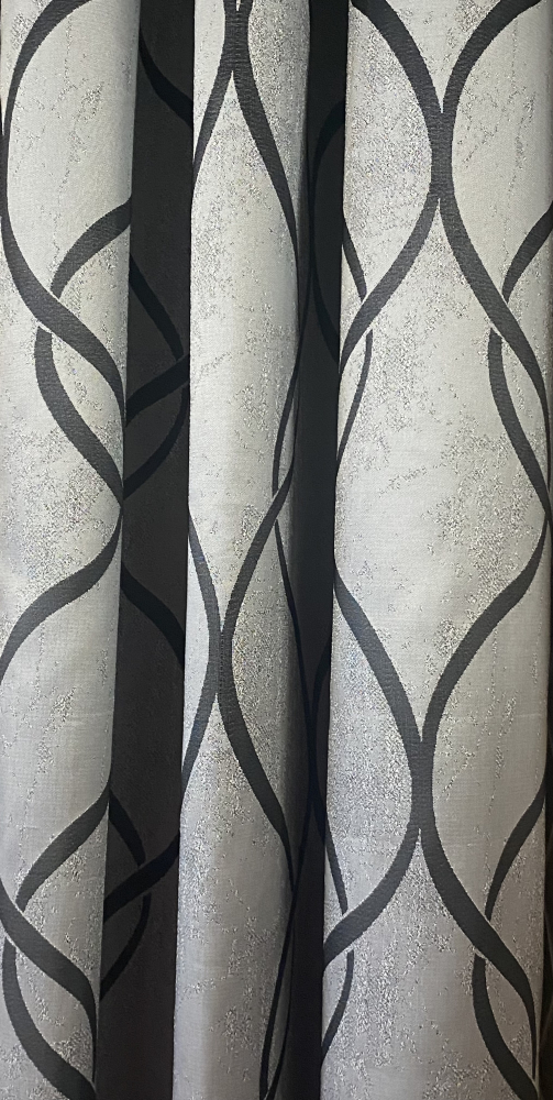Záves, bledo sivá farba,biely vzor, metráž č.10
